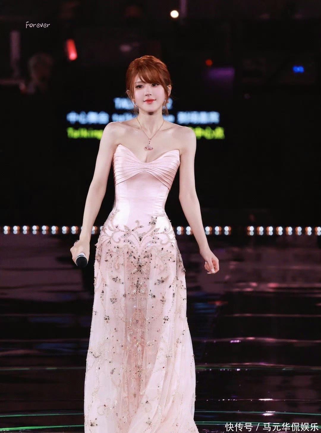 第三套的粉色抹胸长裙,还衬的赵露思很有料的样子,礼服好漂亮,就像千金大小姐似的,网友都称美商太在线了吧!