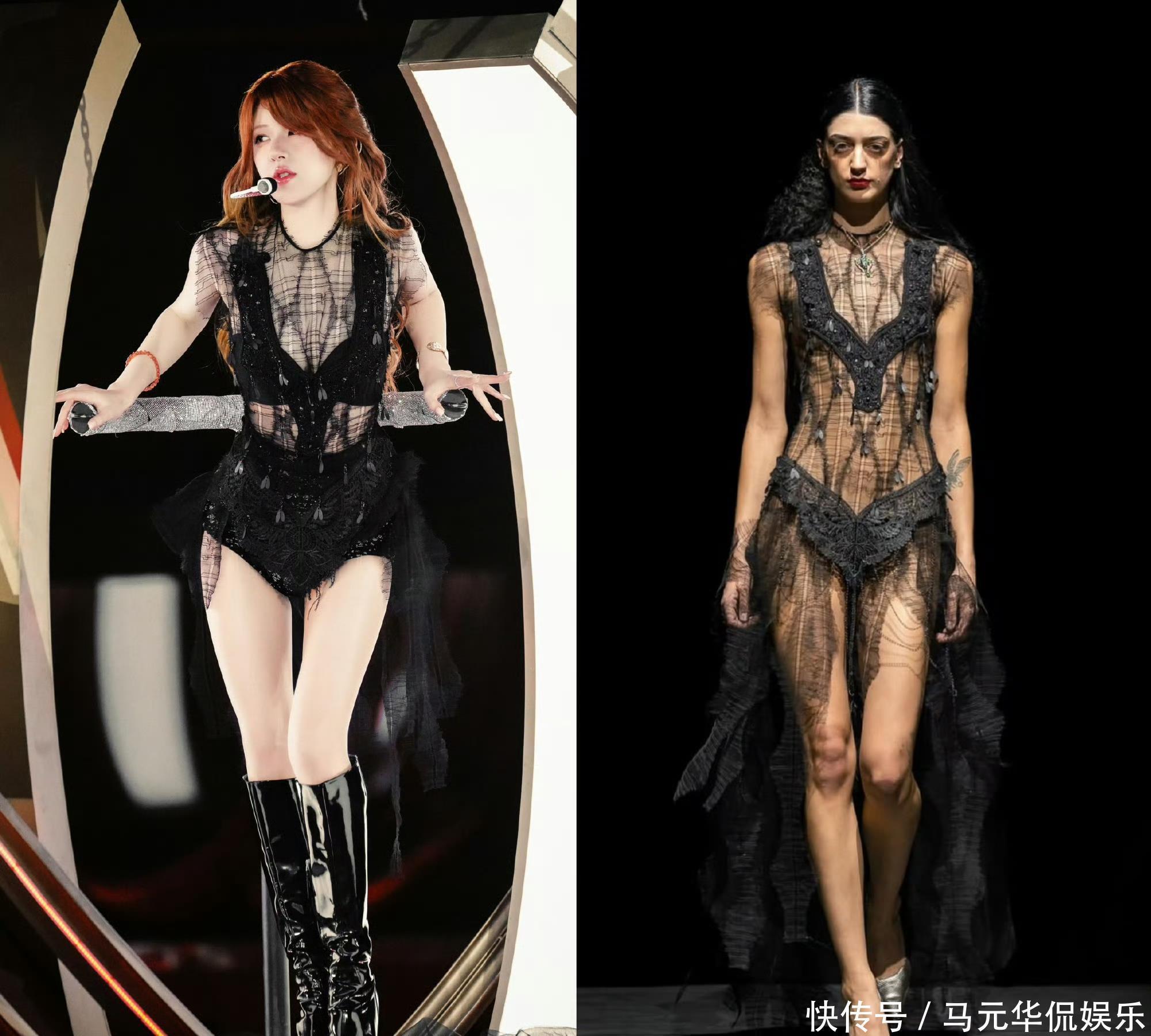 今晚,赵露思生日音乐会亮相舞台了,还唱了她的新单曲《Black Veil Bride》,没想到出场的造型就好应景。黑色的毛毛外套,里面却是黑色的蕾丝,性感魅惑十足。
