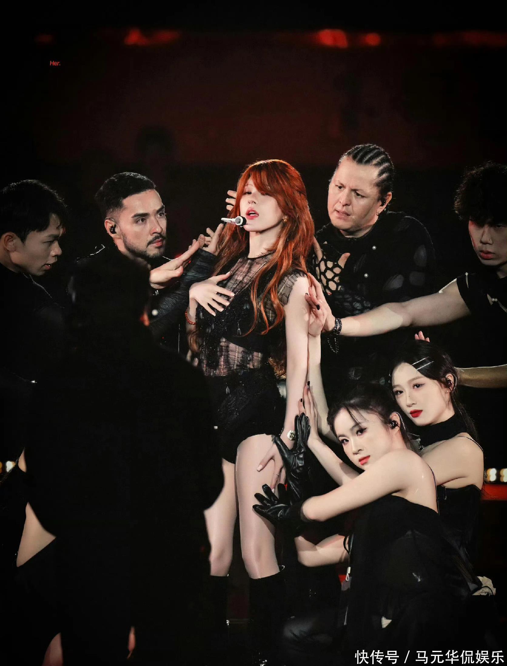 在舞台上的赵露思,真是气场全开,就像黑色性感的小野猫,还是第一次看到赵露思穿这样大胆性格的风格,但却出奇的不违和。